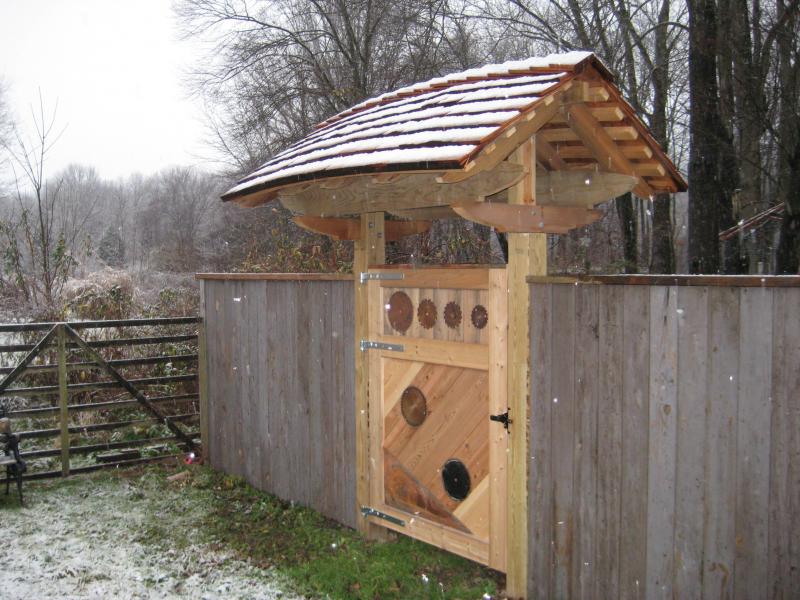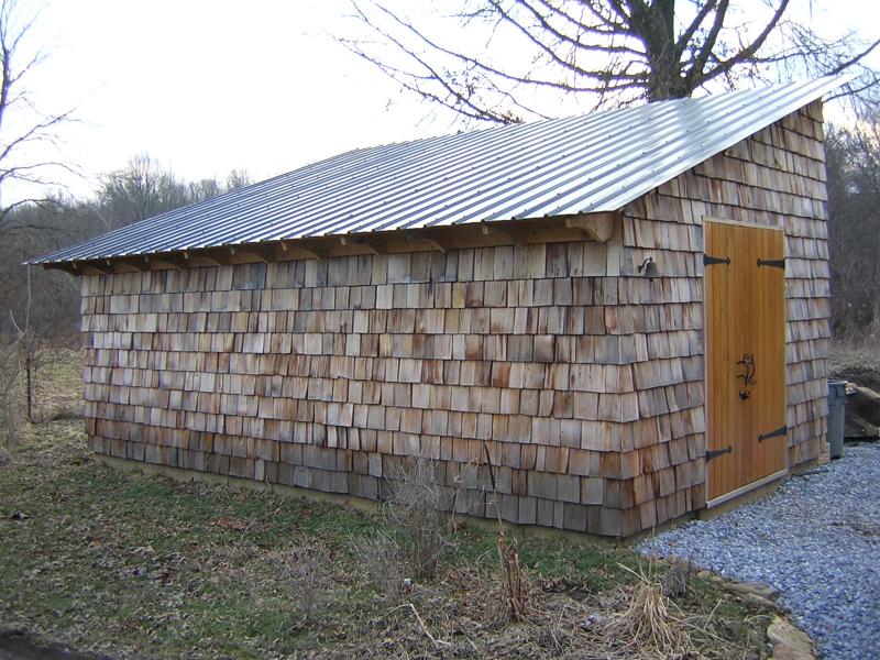 Art studio rear entrance, note clear story windows for passive solar gain and natural lighting.