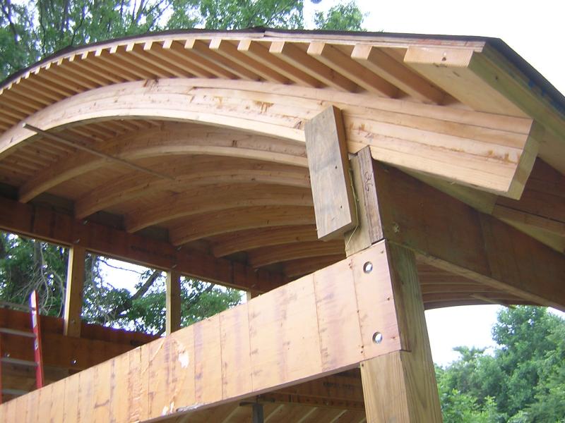 Laminated curved timbers gave this structure a unique look and a spacious vaulted interior.